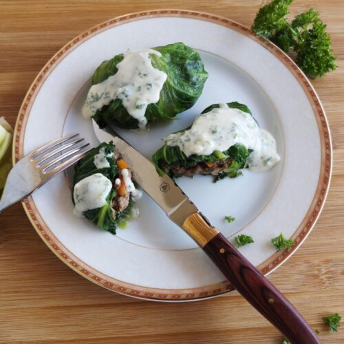 Utiliser les feuilles de laitue extérieures, blanchir rapidement par portions dans l’eau salée en ébullition, égoutter sur un linge.