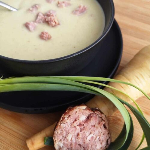 Velouté de panais et ses dés de saucisson